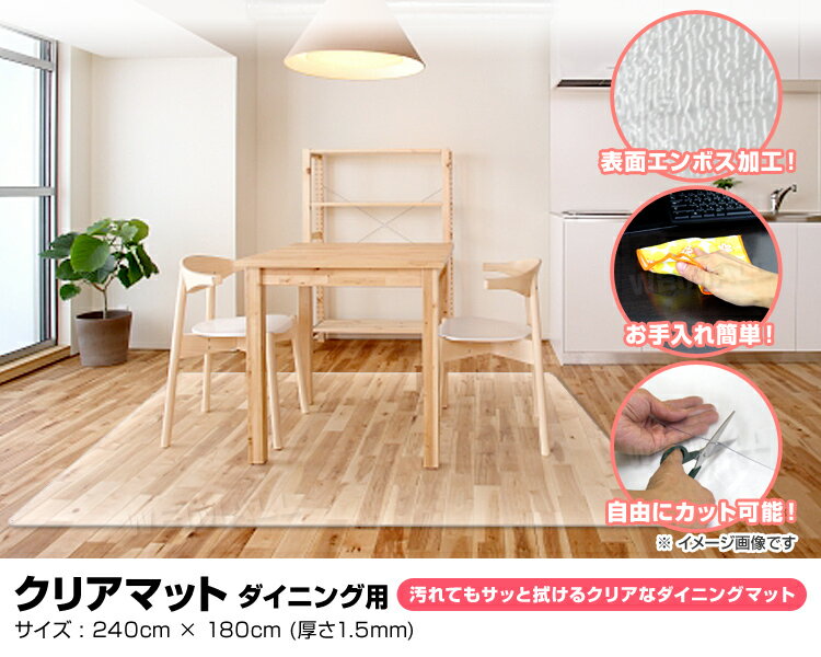 【送料無料】ダイニングマット 撥水 クリア 180×240cm クリアマット ダイニング マット 透明 防水 床暖房対応 抗菌 防カビ 厚さ1.5mm 透明マット 保護シート フロアマット キッチンマット テーブルマット クッションマット おしゃれ 新生活 送料無料 R10P